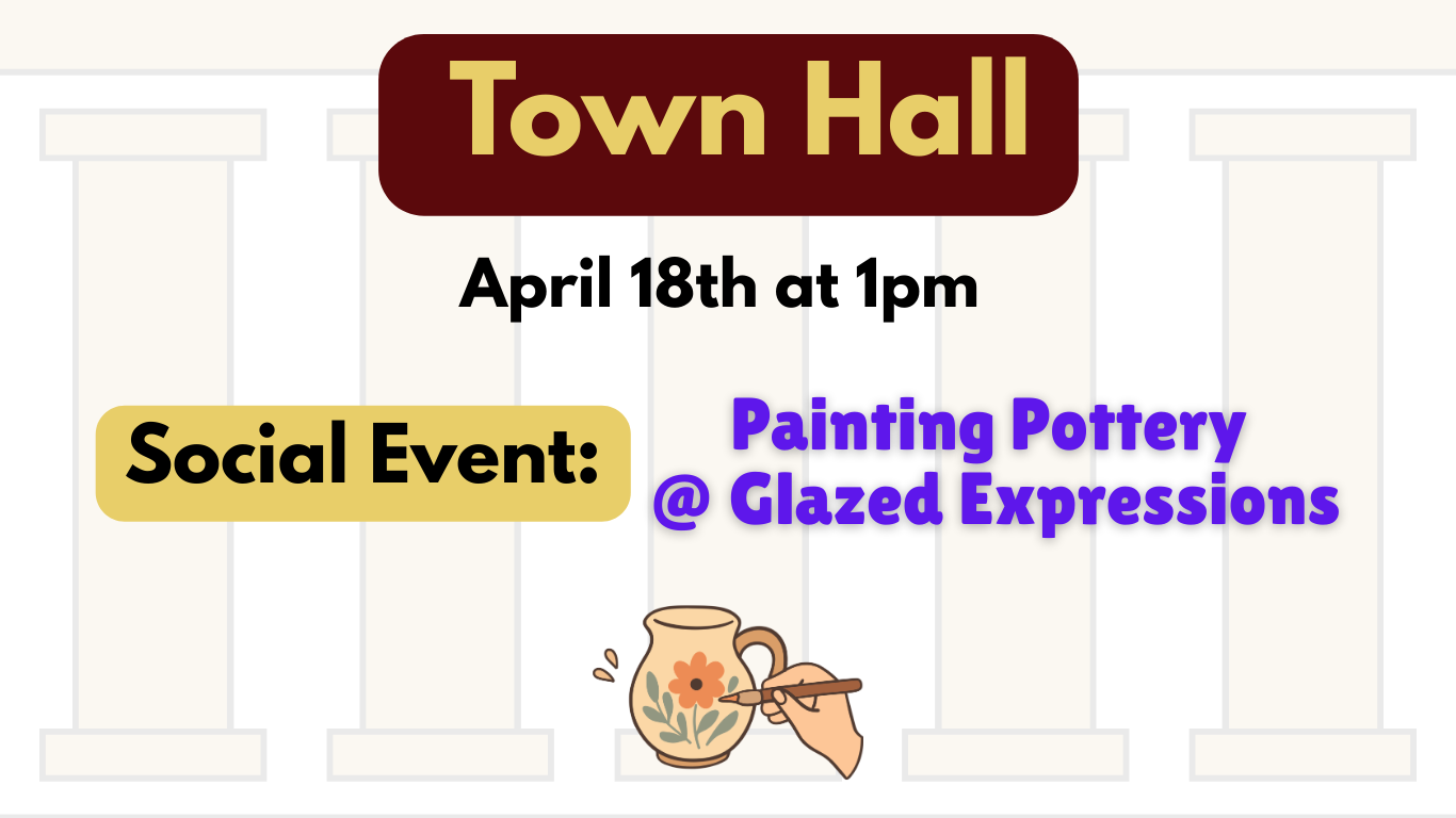 Join us for a creative and social April Town Hall as we gather for pottery painting at Glazed Expressions during their open studio hours! This will be a relaxed, come-and-go style event designed for members to connect, chat, and create together.