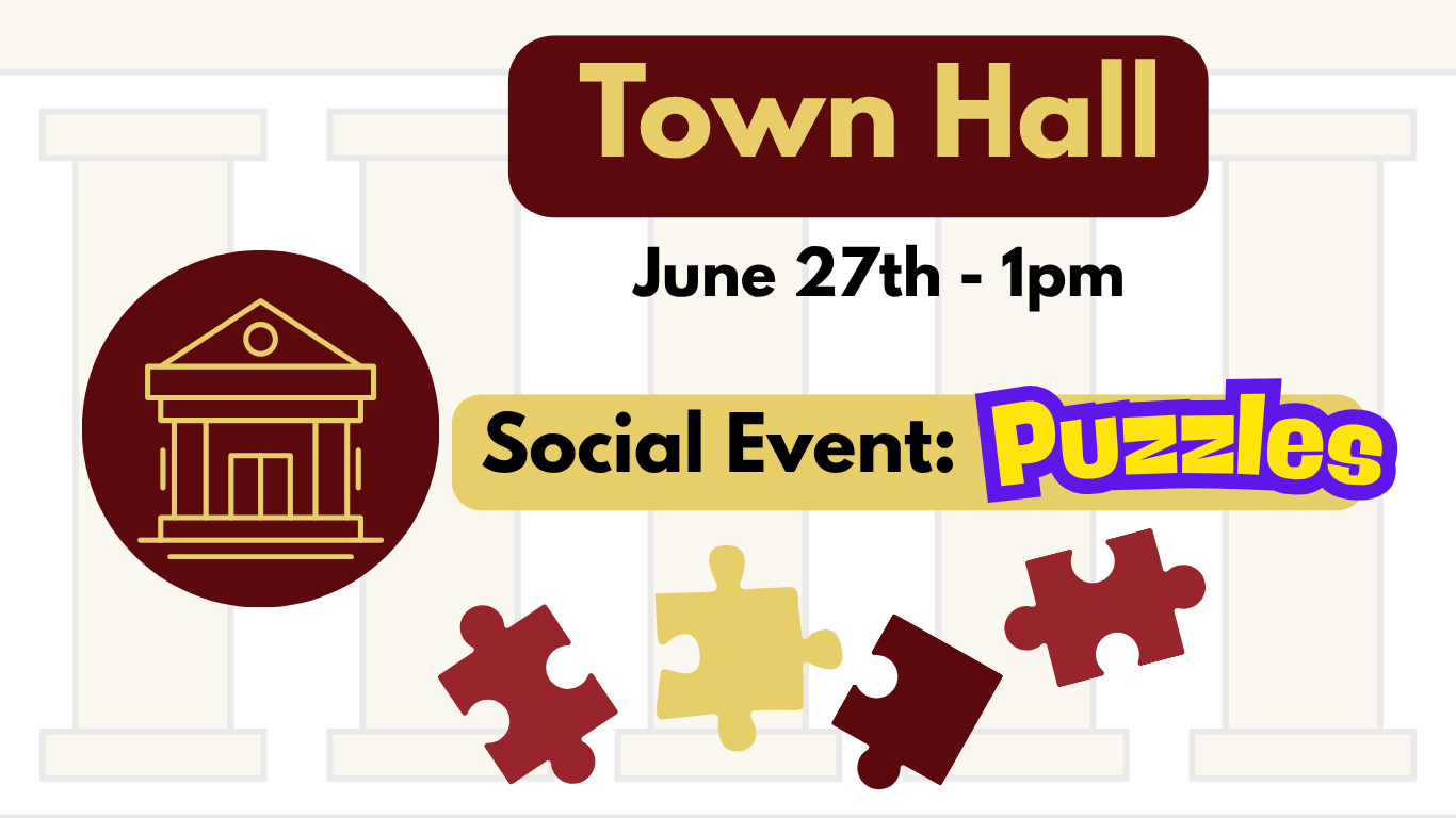 Join us for a Community Town Hall. During this time, we'll share exciting announcements, giveaways, upcoming events, get feedback for future planning, and have a social activity.